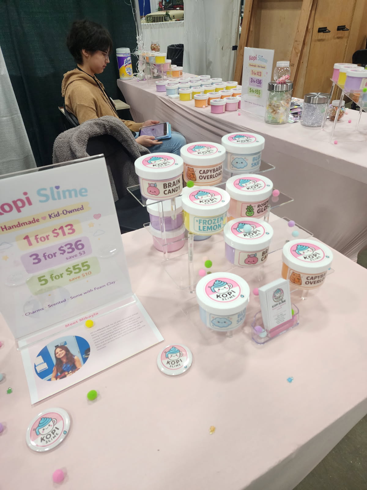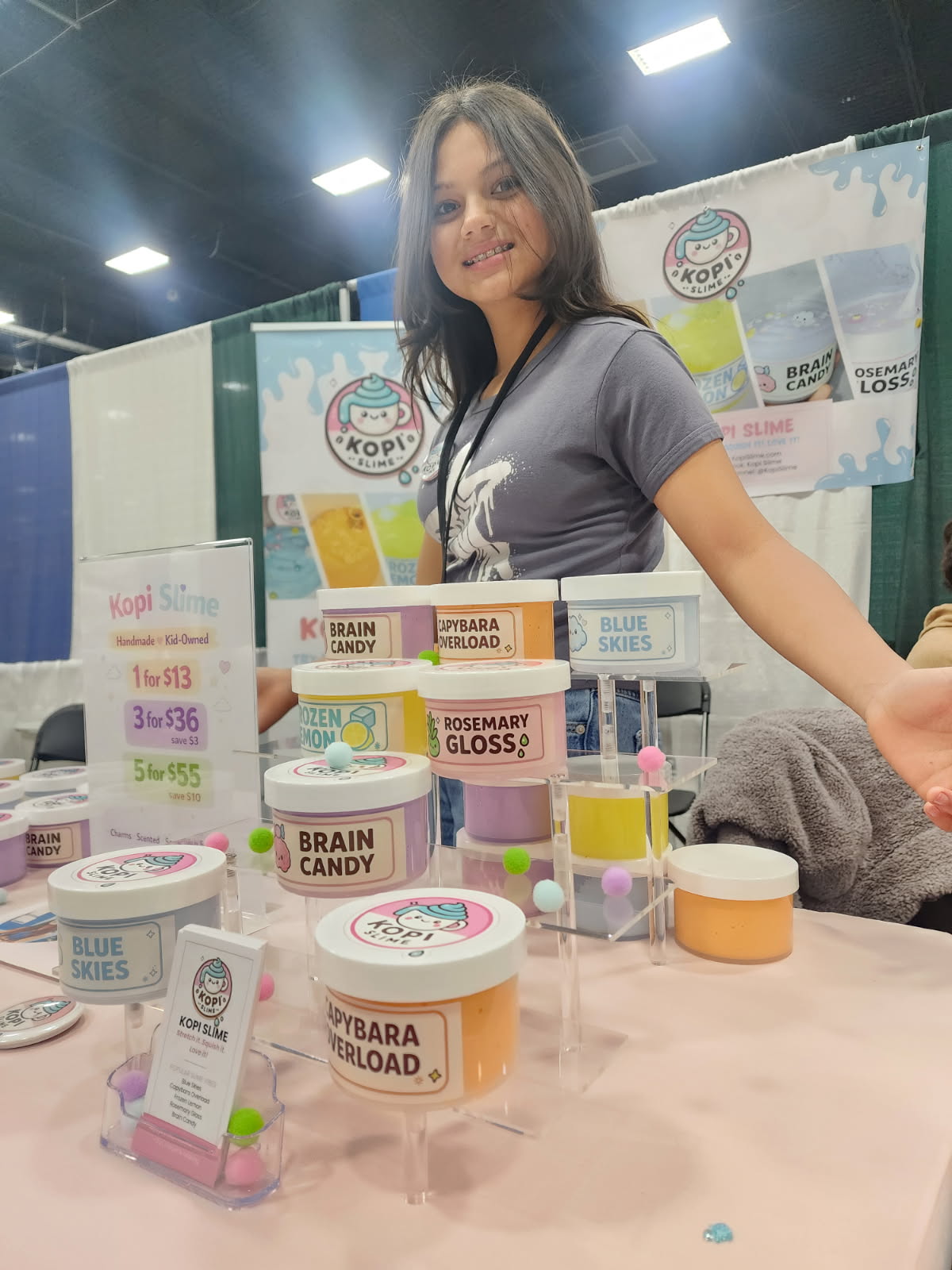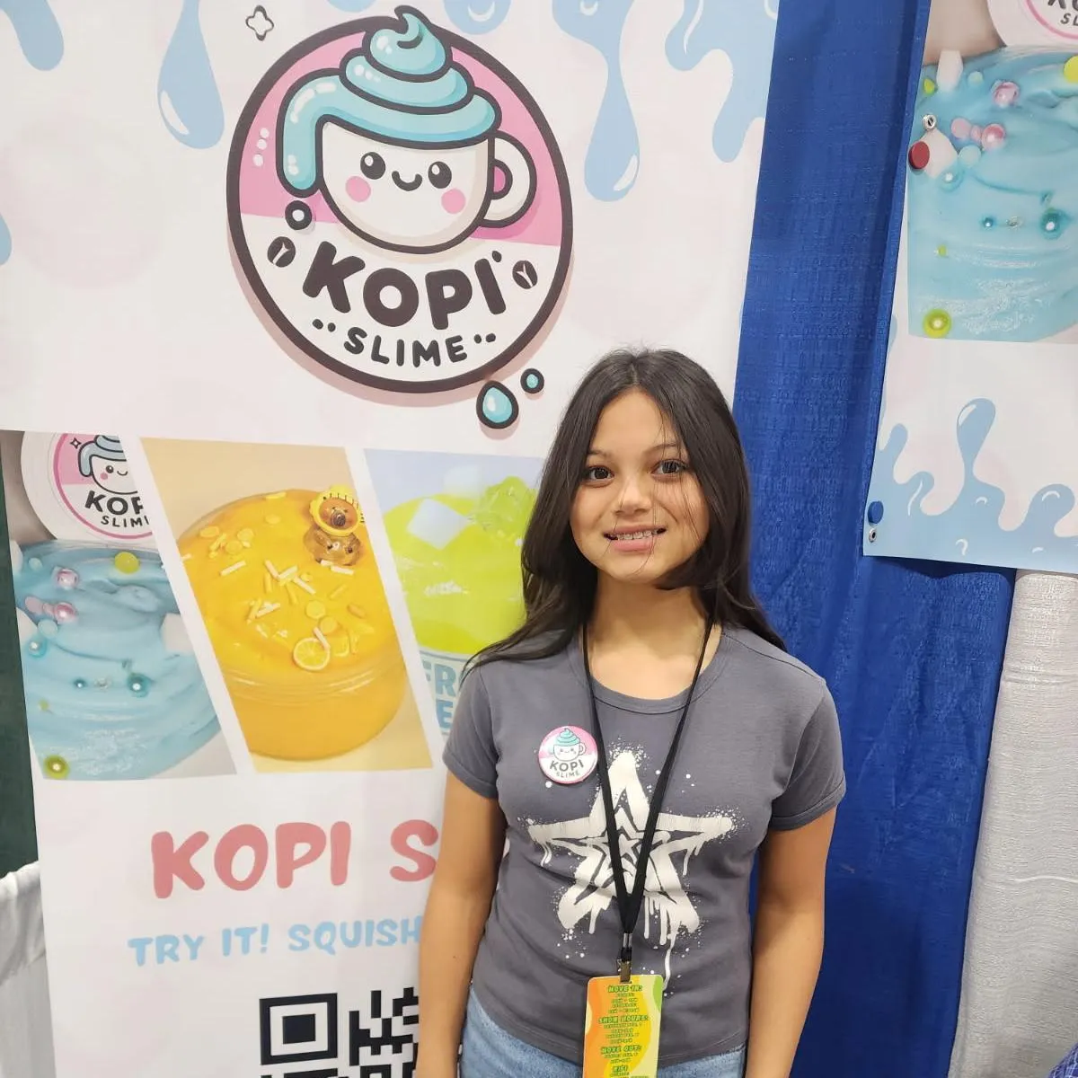 Hi! I’m Mikayla Gist, the 12-year-old creator of Kopi Slime. I’ve been obsessed with slime for years—mixing colors, scents, and charms to make every one unique. I started Kopi Slime because I wanted to share how fun and relaxing slime can be. Life can get busy and stressful, but when you’re playing with slime, you can slow down, stretch, and just enjoy the moment.